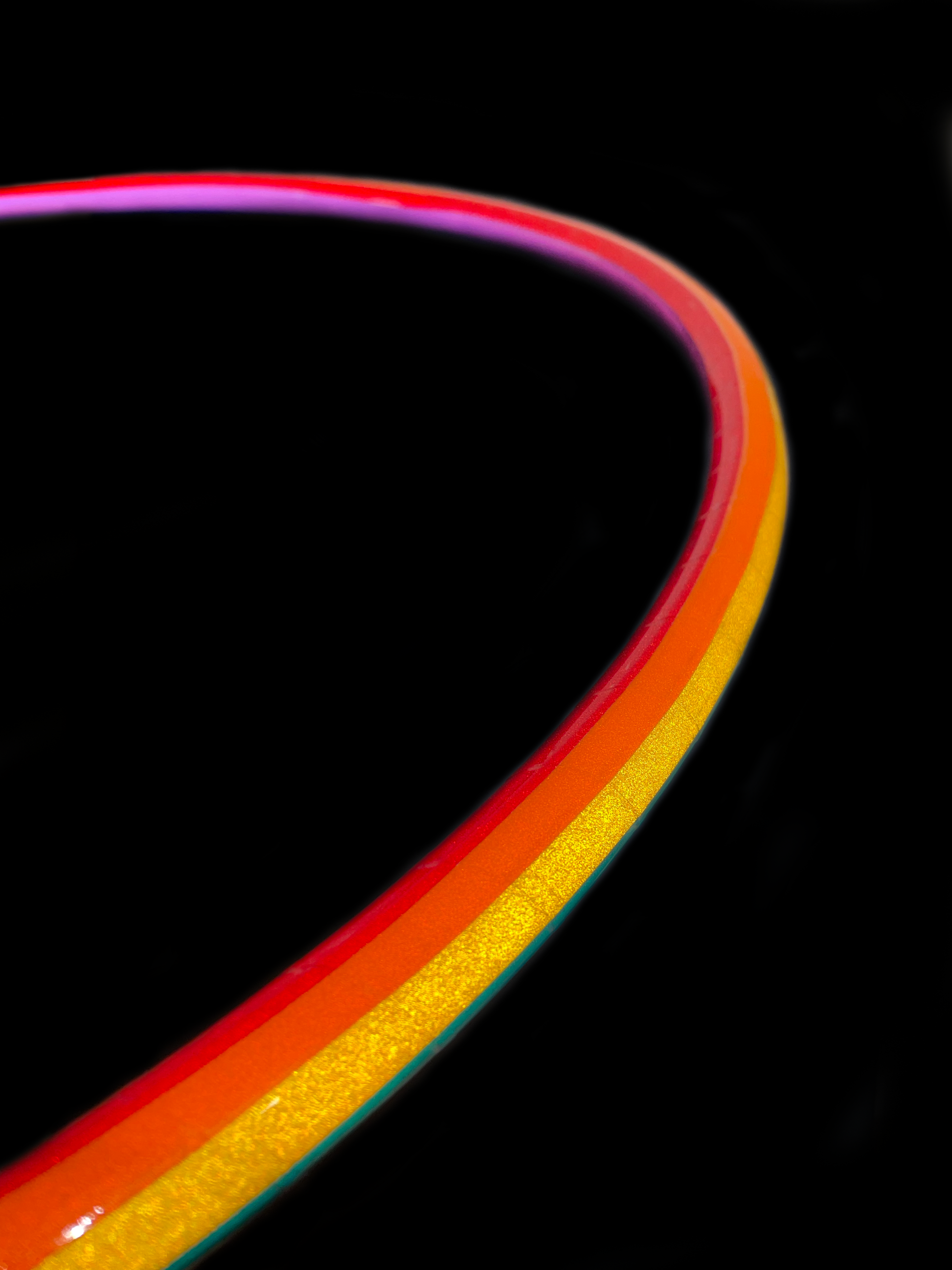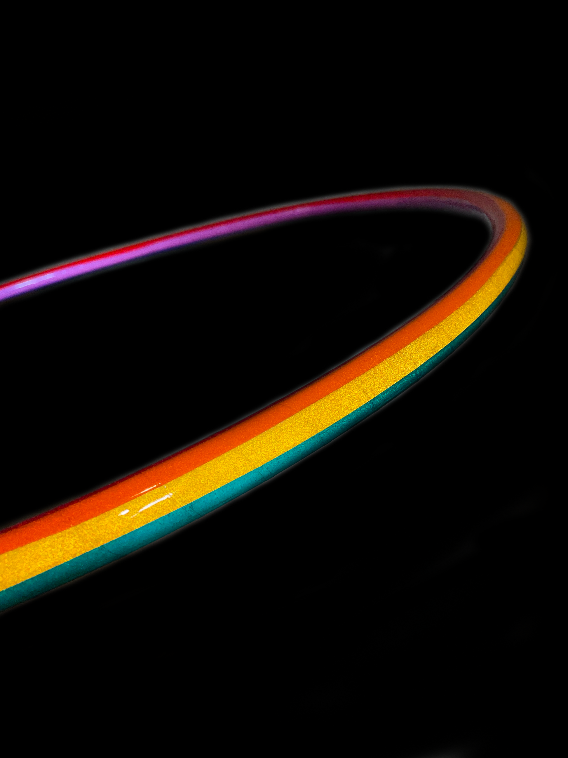 Say hello to our version of a rainbow reflective coinflip hoop! Made with 7 colors of the rainbow, crystal clear protective tape, & clean connections - this is the rainbow reflective hoop of your dreams!