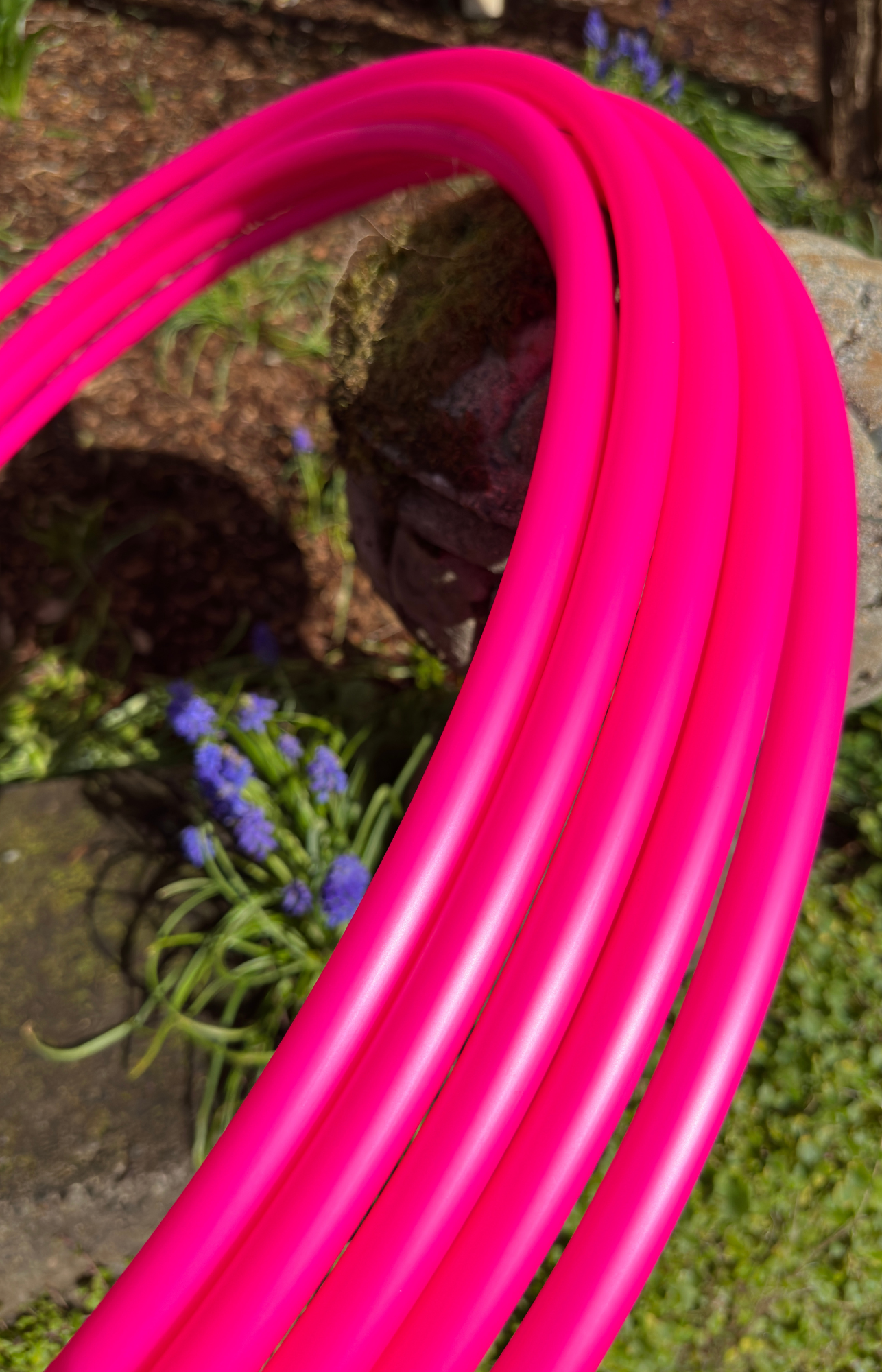 Add a touch of shimmer to your hoop game with Valentina Metallic Pink. It's that classic pink you picture when you think "pink!". This durable and lightweight hoop is designed to hold up with frequent use, perfect for hoopers of any level.
